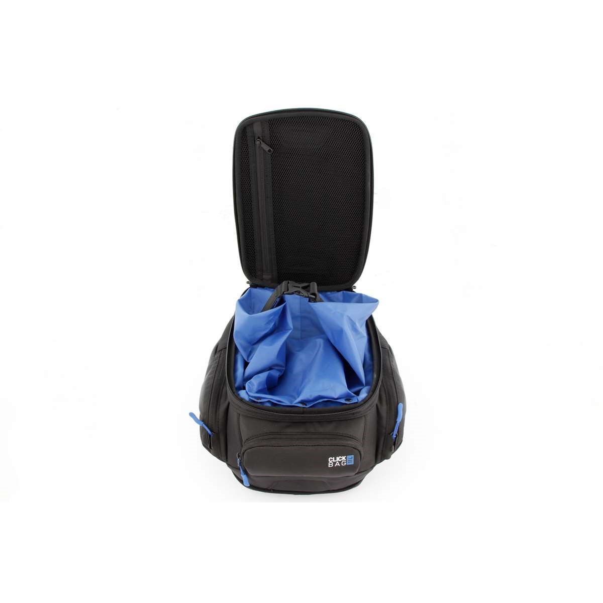 Unser CLICK BAG 11 Tankrucksack bietet Ihnen ein bemerkenswert smartes Handling, denn das Anbringen und Lösen erledigen Sie im Handumdrehen – eben mit einem „Klick“. Die Tankrucksäcke unserer CLICK BAG Reihe lassen sich bequem auf dem jeweiligen modellspezifischen Tankring durch eine mechanische, formschlüssige Arretierung sicher befestigen.
