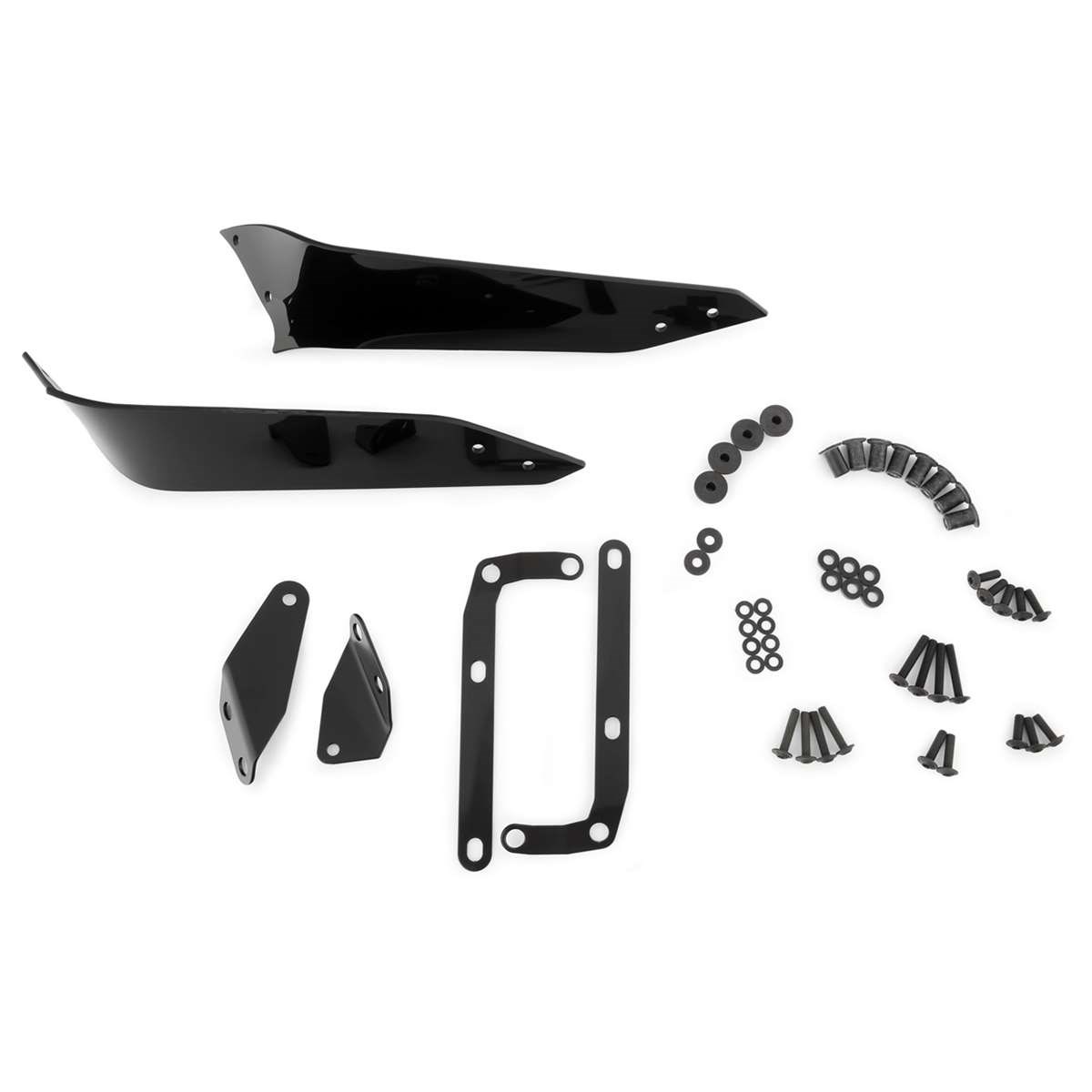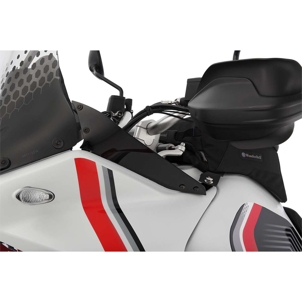 Sie optimieren nicht nur Schutz vor fahrtwindinduzierten Wirbeln, sondern auch vor Witterungseinflüssen. Die Effizienz der Windabweiser sorgt in erster Linie für mehr Komfort, dank der aerodynamischen Reduzierung der Fahrtwindwirbel, ihre Wirksamkeit ist so effizient, dass ihr Wunderlich Design mit dezenter Integration überzeugt. Die hochwertige, Wunderlich typische Verarbeitung, die solide Konstruktion und der Einsatz probater Werkstoffe runden das hochwertige Bild der Flaps ab. Wunderlich liefert die Windabweiser mit ABE aus. Die Montage ist denkbar einfach, sie erfolgt an bereits am Motorrad vorhandenen Anschlusspunkten.