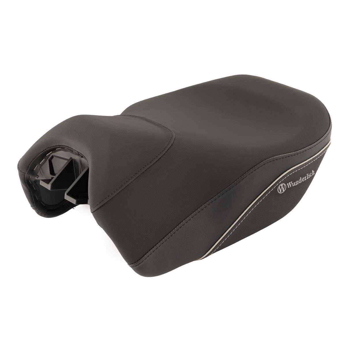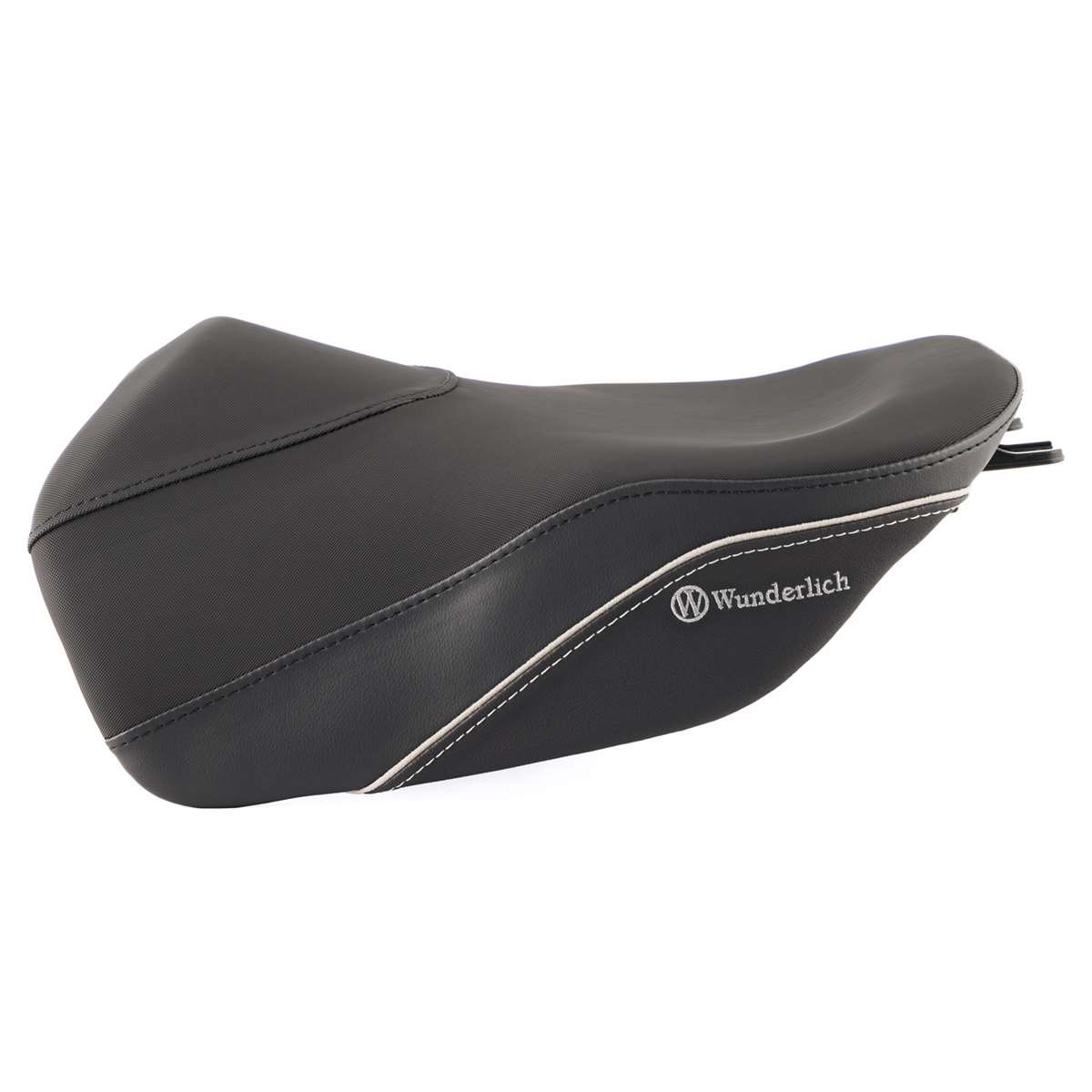 Das „Durchsitzen“ der Polsterung wird aufgrund der durchdachten Konstruktion zuverlässig vermieden und der Sitzdruck auf einer größeren Fläche gleichmäßig verteilt, was zu einer spürbar geringeren spezifischen Druckbelastung am Allerwertesten führt. Angenehm! Die ergonomische Form des Spezialschaums entlastet zudem das druckempfindliche Steißbein. Sie bieten perfekten Halt und aktive, sichere Kontrolle bei forcierter Fahrt, ganz besonders auch beim Bremsen: Wer kennt das nicht, wenn die Sozia beim Ankern plötzlich von hinten schiebt und man sich unvermittelt abstützen und gleichzeitig, in einer vielleicht brenzligen Lage, auch noch lenken muss. Mit Wunderlichs eigens entwickelter Stützkontur gehören diese Schreckmomente beim Bremsen der Vergangenheit an. Die innovative, ergonomische 3-D-Kontur sorgt auch dafür, dass Druckstellen an den Innenschenkeln beim Stehen an der Ampel, passé sind.
