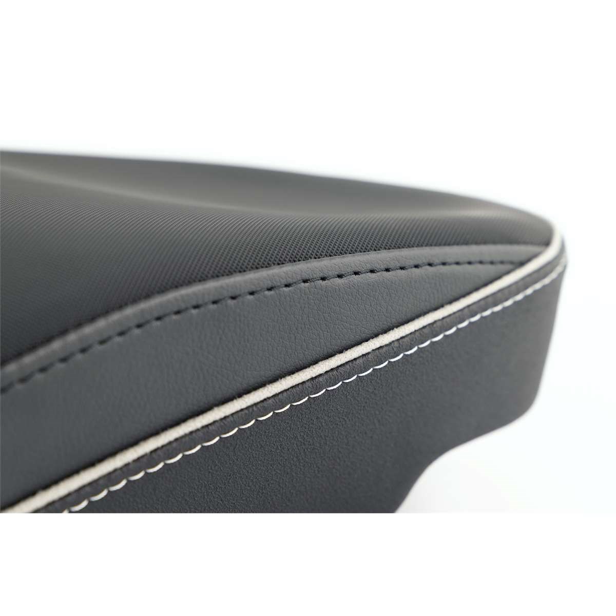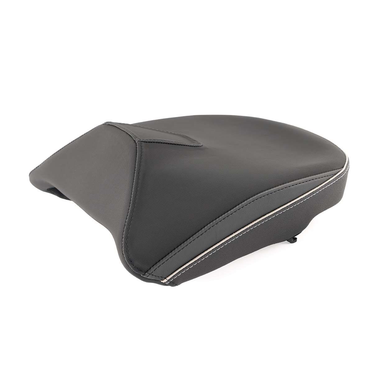 Wir fertigen unsere Sitze mit einer charakteristischen, ergonomischen 3-D-Kontur. Die Form und Neigung des aufwändig verarbeiteten Sitzbankkerns unterstützen die ergonomische vorteilhafte, natürliche Haltung des Beckens. Ein besonderes Merkmal unserer Beifahrersitzbank ist die im vorderen Bereich der Sitzbank integrierte Stützkontur, die beim Bremsen zusätzlich sicheren Halt gibt. So ins Motorrad integriert, fährt es sich einfach entspannt und damit aktiv. Und, kein Zweifel, entspanntes Sitzen schafft ein Plus an passiver Sicherheit. Diese AKTIVKOMFORT Sitzbank verfügt über die neueste ThermoPro Technologie, bei der die Temperatur der Sitzfläche im Hochsommer in praller Sonne um bis zu 25°C niedriger im Vergleich mit herkömmlichem Bezugsmaterial ausfällt. Passend dazu haben wir eine Fahrersitzbank im Programm.