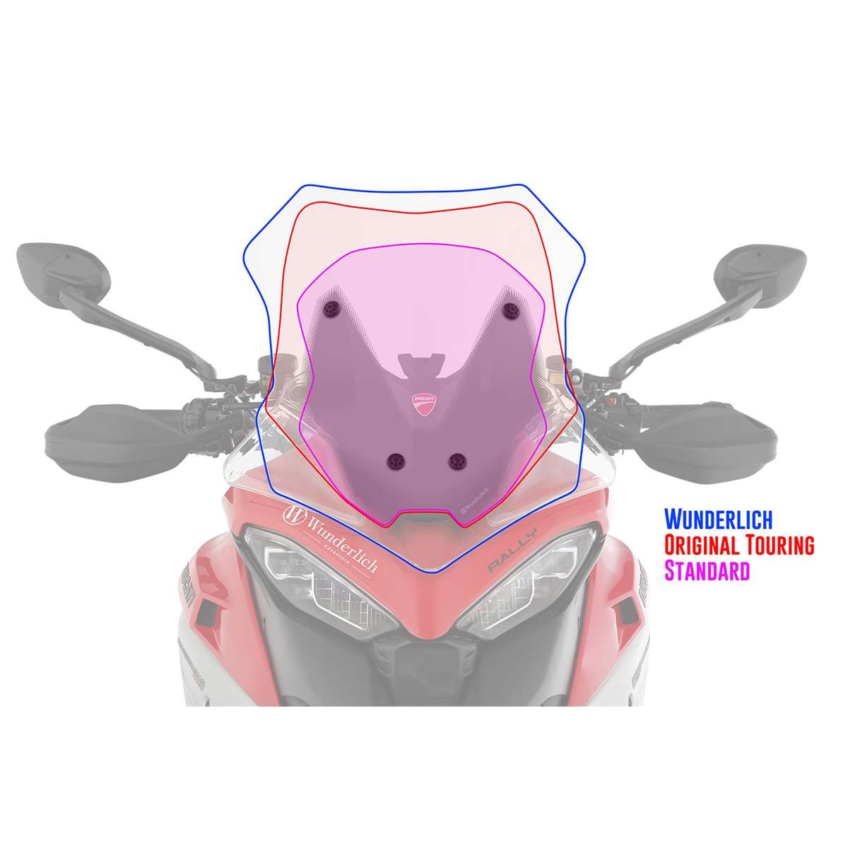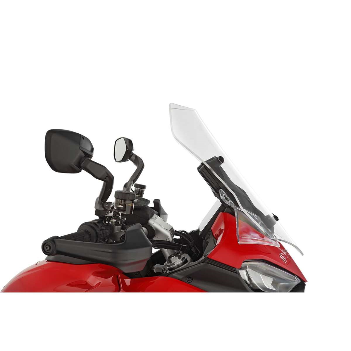 • Unsere MARATHON Scheibe betont die Linie der Flyline der Multistrada V4 konsequent, um den Charakter der Italienerin zu unterstreichen – sie integriert sich perfekt ins Gesamtlayout