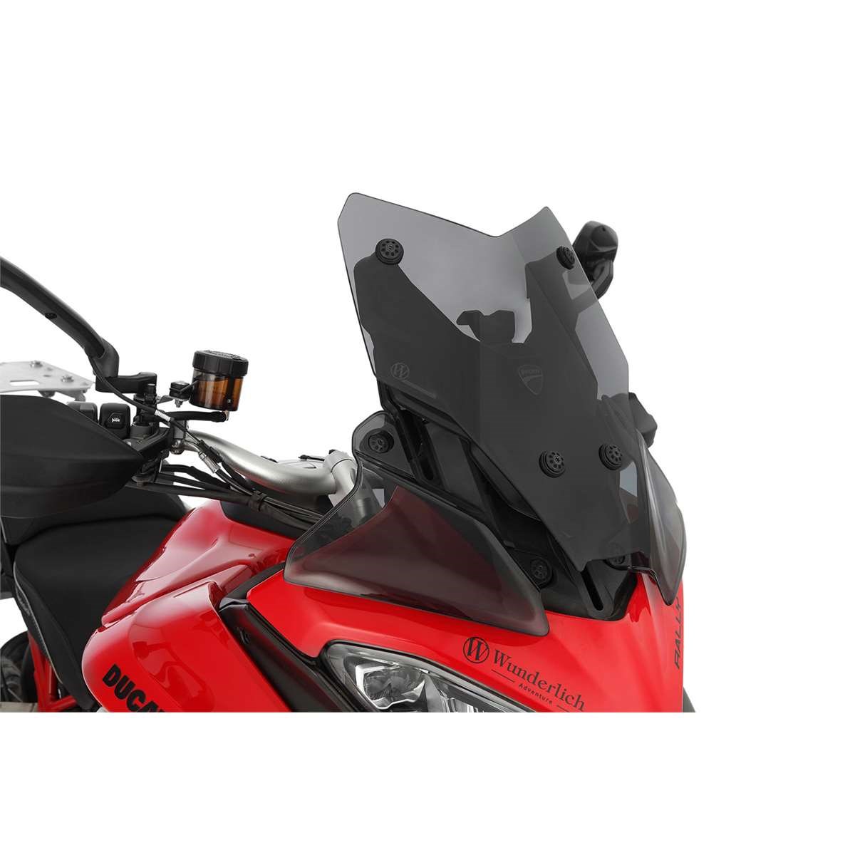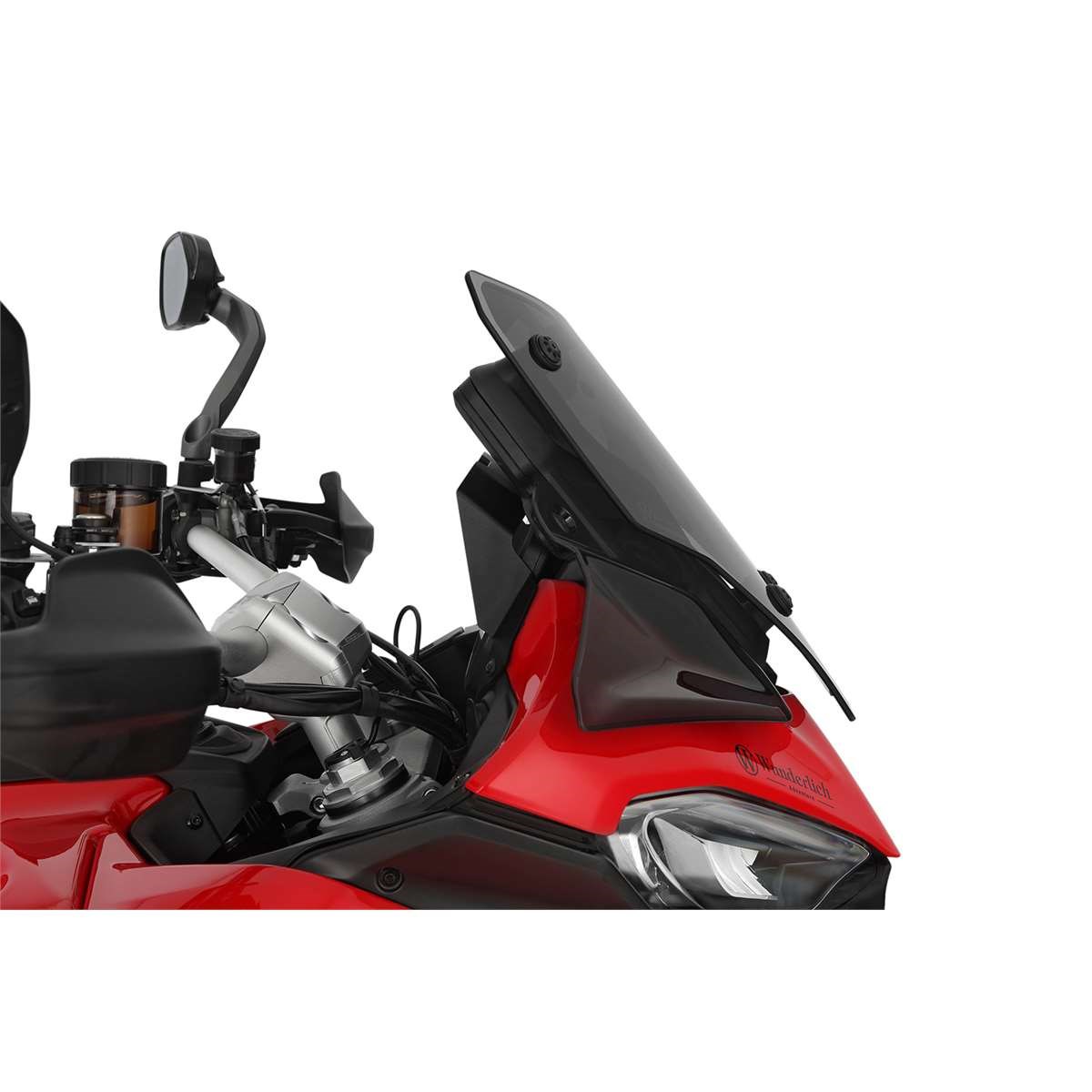 Speziell für sportlich ambitionierte Fahrer: Wir haben ein Design-Konzept entwickelt, das Ihrer Ducati Multistrada V4 mit wenigen Handgriffen einen eigenständigen, sportlich-markanten Auftritt verleiht und durch seine strömungsgünstige Form für optimale Aerodynamik sorgt. Größe und Proportionen unserer Verkleidungsscheibe SPORT verbinden perfektes Design mit hohem Basisschutz, bei dem Verwirbelungen im Helmbereich spürbar reduziert werden. Die Scheibe kann in der unteren und der oberen Position arretiert werden, wobei sich die obere Position als perfekte Einstellung für Autobahnfahrten erweist.