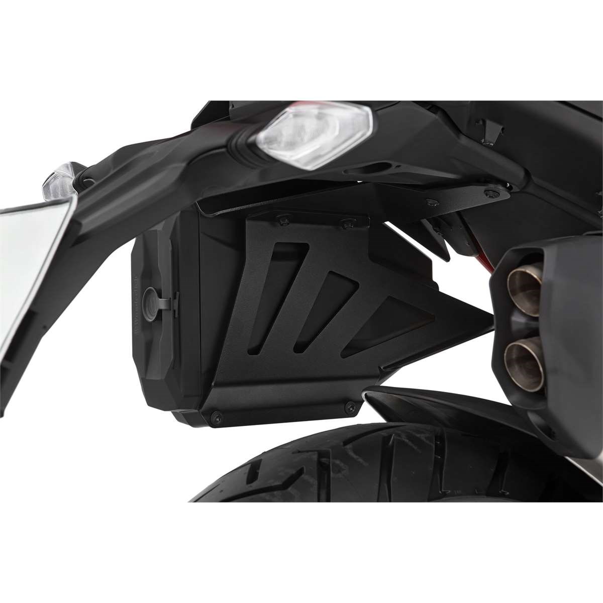 Unsere maßgeschneiderte, abschließbare Werkzeugbox bietet zusätzlichen Stauraum für allerlei hilfreiche Kleinigkeiten und eignet sich für Modelle ohne Koffer. Die funktionale, robuste Box ist mit vier soliden Gewindeeinsätzen versehen und wird mit zwei Haltern auf der linken Fahrzeugseite sicher montiert. Der Deckel ist gegen Verlust gesichert. Die aus hochwertigem Kunststoff bestehende Box ist wasserdicht und extrem robust. Wir liefern sie mit dem passenden Haltesatz sowie codierbarem Schließzylinder.