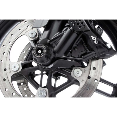 Der ABS-Sensor für das Vorderrad liegt sehr exponiert und ungeschützt zwischen Radialbremssattel und Vorderradachse. Er ist ein sensibles Bauteil, das zusammen mit dem ABS-Kranz und dem ABS-Steuergerät verhindert, dass die Vorderradbremse blockiert und der Fahrer die Kontrolle über sein Motorrad verliert. Ein wichtiges Sicherheitsbauteil also, das immer funktionieren muss und das es gegen mechanische Beschädigungen durch Steine, Geäst oder sonstige Fremdkörper zu schützen gilt.