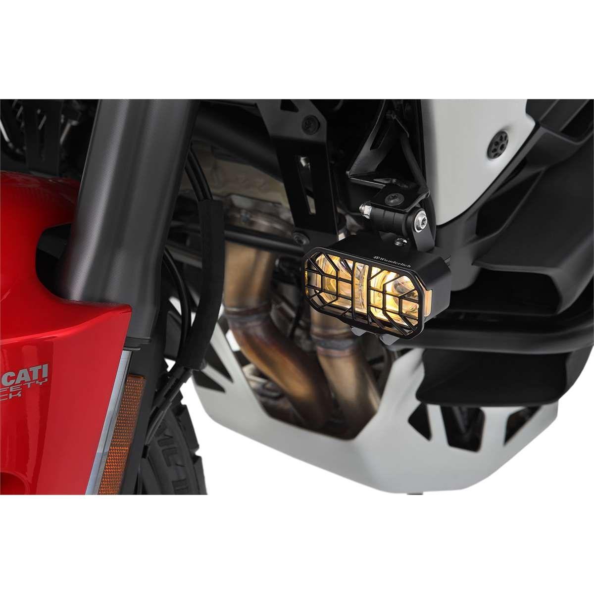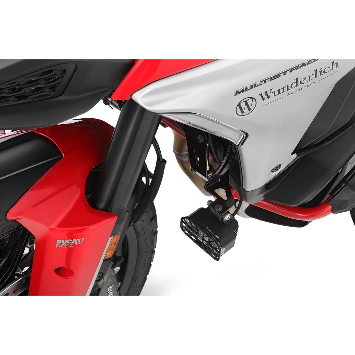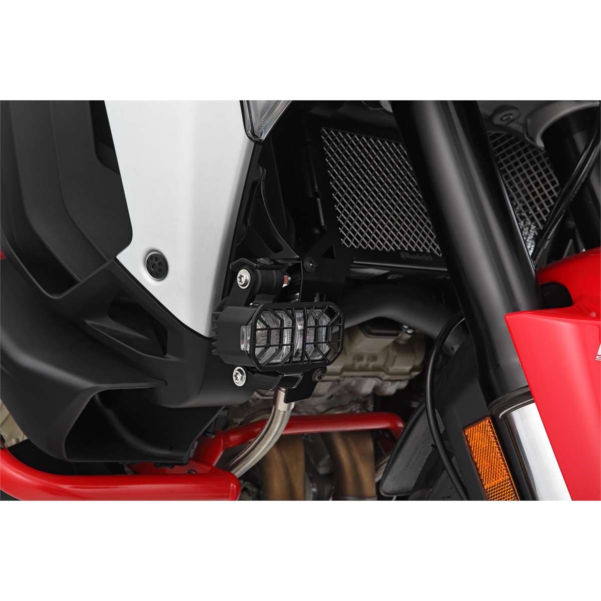 Die Bedienung erfolgt mit einem beleuchteten Schalter bequem vom Lenker aus. Die Lichtfarbe entspricht der der Hauptscheinwerfer der Multistrada V4. Der Einbau erfolgt Plug & Play.