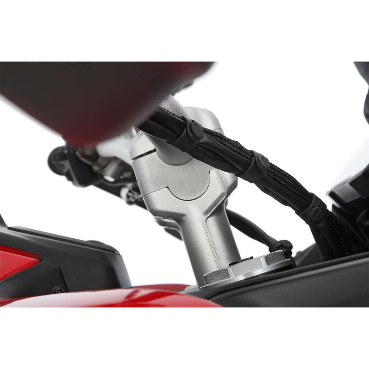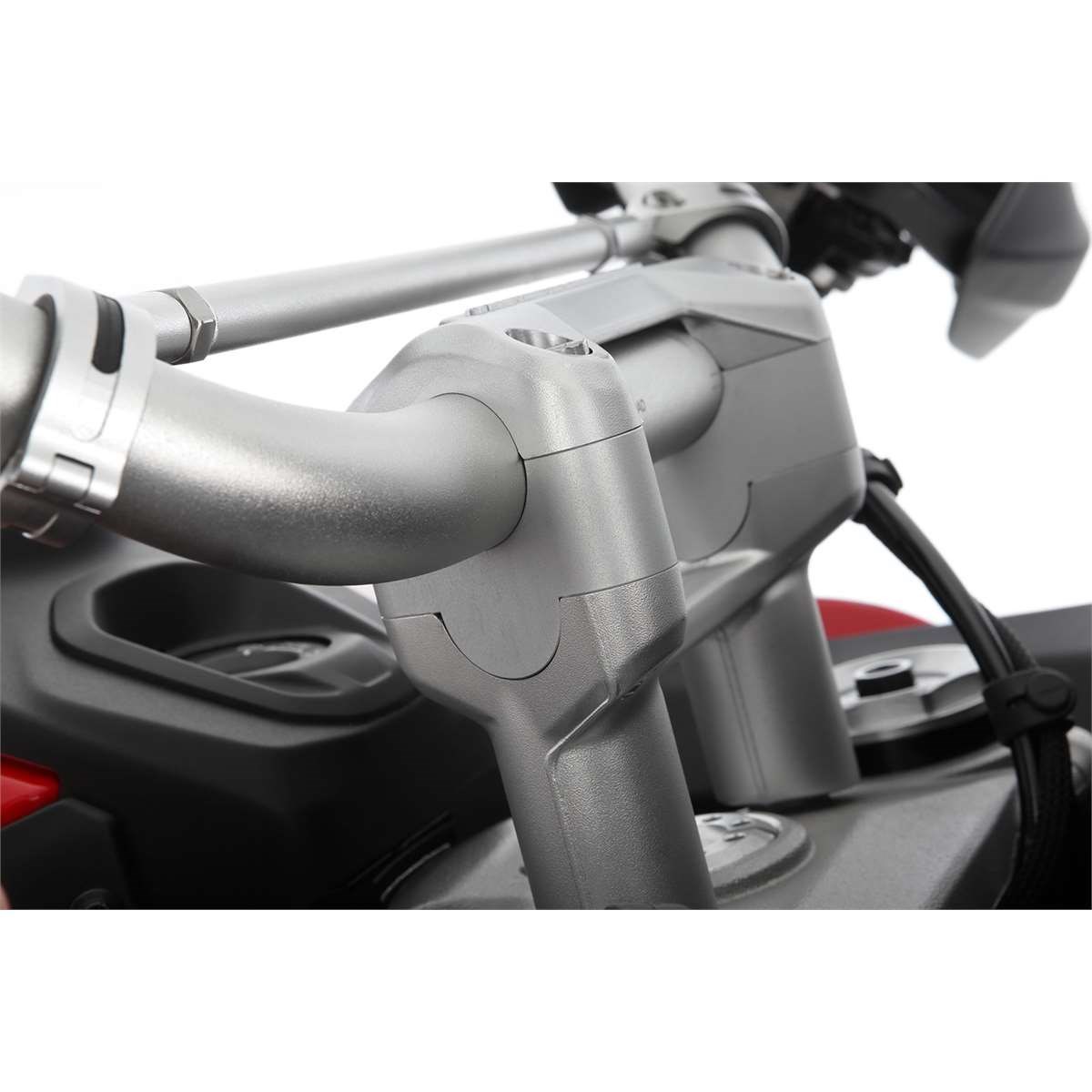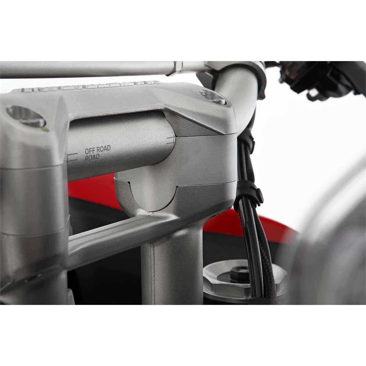Die von unseren Entwicklern speziell konstruierte Lenkererhöhung hebt den Lenker moderat um 25 mm an. Die ergonomischen Effekte sind beträchtlich, wirken sie sich doch entspannend auf die gesamte Rücken-Muskulatur und die Arme aus und entlasten zugleich Wirbelsäule, Becken und Steißbein. Damit werden die Tourentauglichkeit und der Komfort enorm verbessert. Und entspanntes Fahren sorgt nebenbei für ein Plus an passiver Sicherheit, genau wie die bessere Übersicht über das Verkehrsgeschehen, die sich aus der aufrechteren Sitzposition ergibt.