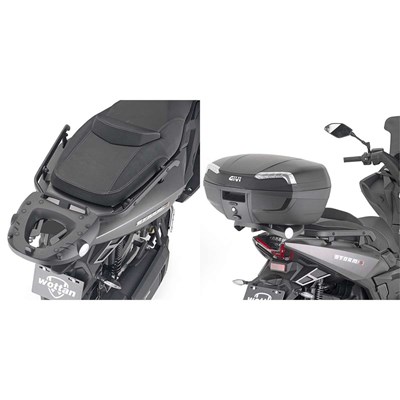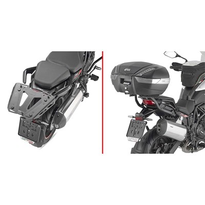 kann nur in Kombination mit dem Gepäckträger aus Aluminium mit elektromagnetischer Verriegelung und verschiebbarer Platte für Original-Topcase montiert werden / Montage der Bremslichter und/oder der Fernbedienung nicht möglich