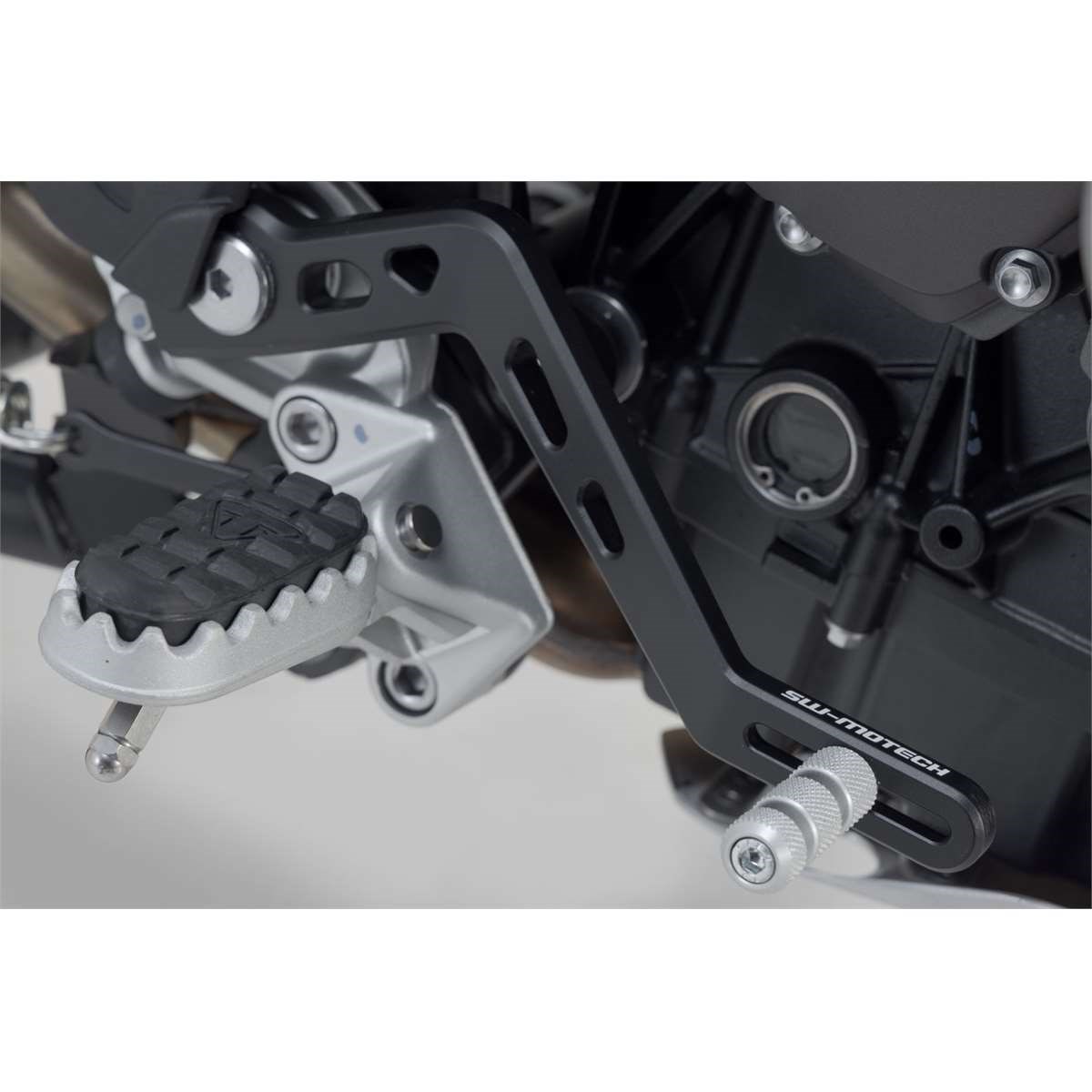 Der verstellbare Fußbremshebel aus hochwertig gefrästem Aluminium mit HART-COAT® Beschichtung ermöglicht eine bessere Bedienbarkeit und Dosierung der Bremse. Der SW-MOTECH Fußbremshebel ist auf einer Länge von 5 cm einstellbar, dadurch passt er zu jedem Fuß und zu jedem Fahrstil. Die Rändelungen des Auftritts erhöhen die Griffigkeit und sorgen für verbesserte Stabilität beim sportlichen Fahren und längeren Touren. Mit dem separat erhältlichen Adventure-Auftritt verbesserst du das Handling der Fußbremse insbesondere beim Offroad-Fahren im Stehen.
