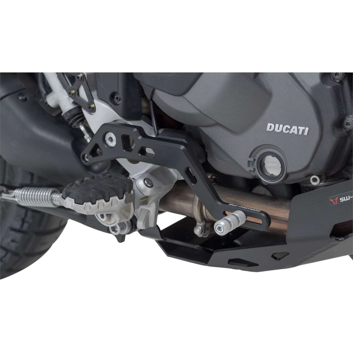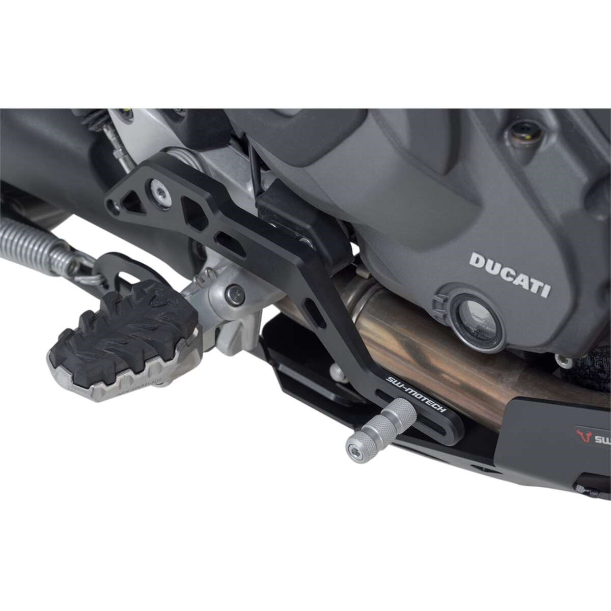 Der verstellbare Fußbremshebel aus hochwertig gefrästem Aluminium mit HART-COAT® Beschichtung ermöglicht eine bessere Bedienbarkeit und Dosierung der Bremse. Der SW-MOTECH Fußbremshebel ist auf einer Länge von 5 cm einstellbar, dadurch passt er zu jedem Fuß und zu jedem Fahrstil. Die Rändelungen des Auftritts erhöhen die Griffigkeit und sorgen für verbesserte Stabilität beim sportlichen Fahren und längeren Touren. Mit dem separat erhältlichen Adventure-Auftritt verbesserst du das Handling der Fußbremse insbesondere beim Offroad-Fahren im Stehen.