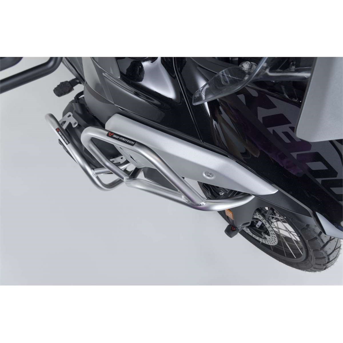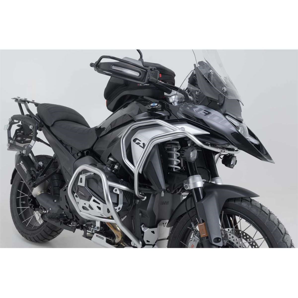 Die ausschließlich für dieses Motorrad entwickelten Elemente fügen sich nahtlos in das Erscheinungsbild des Fahrzeugs ein und garantieren eine einfache Montage. Die oberen Sturzbügel schützen hauptsächlich die Verkleidung des Motorrads und verleihen dem Motorrad ein individuelles Aussehen.