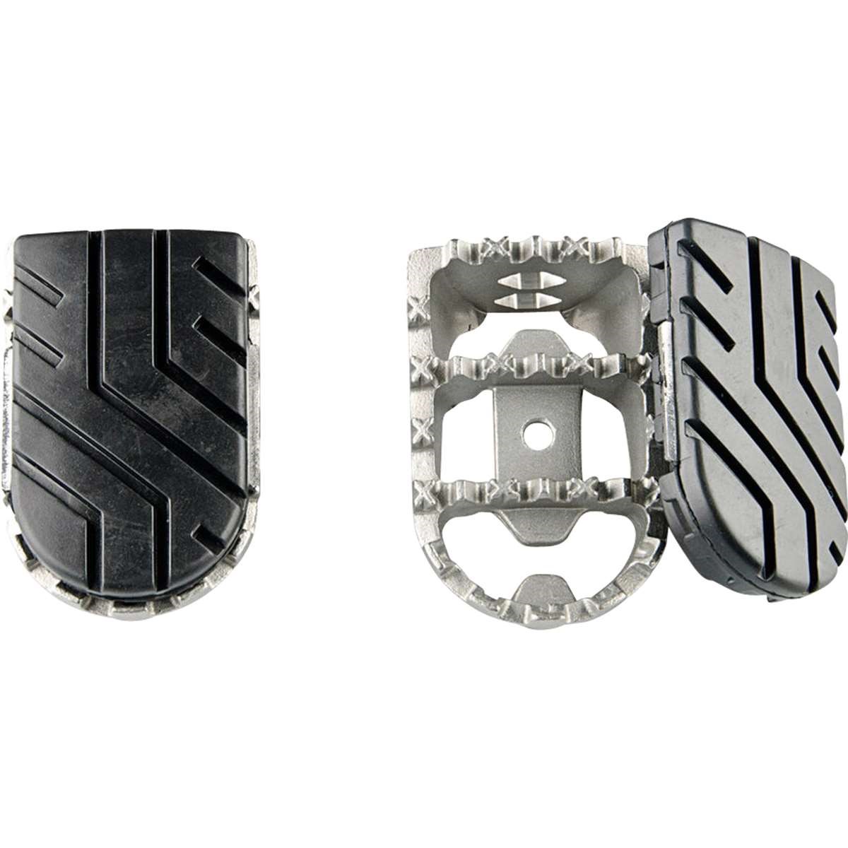 Die preiswerten ION Sozius Fussrasten-Kits erlauben die Montage der Sozius Fussraste in Originalhöhe oder eine Tieferlegung um 15 mm. Äusserst stabil und langlebig ausgelegt, bieten die Edelstahl-Sozius Fussrasten extra viel Grip und empfehlen sich für Adventure-, Offroad- und Strassenmaschinen. Gelenke aus hochfester Aluminium-Legierung sorgen dafür, dass die Raste beim Umfallen des Fahrzeuges wegklappen kann. Eine abnehmbare Gummi-Auflage reduziert Vibrationen, das Profil bietet guten Halt auch beim Offroad-Einsatz. Zur Montage der modellspezifischen Gelenkadapter an der Fussrasten-Aufnahme werden die original Anbauteile (Feder, Bolzen, ...) verwendet.