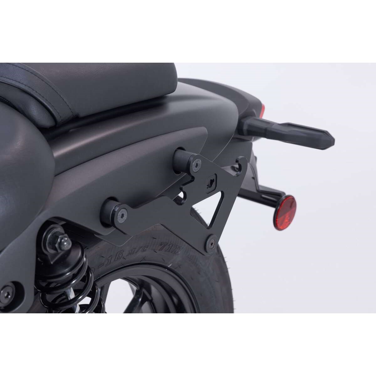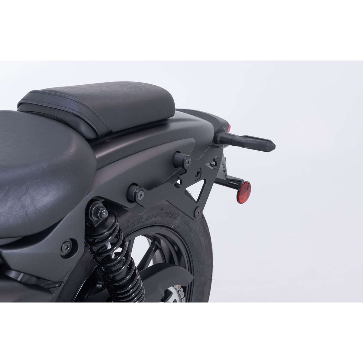 Der modellspezifische Taschenträger wird an original Anbaupunkten des Fenderstruts einfach und schnell montiert. Über ein Schnellverschluss-System lässt sich die Legend Gear Seitentasche LH mit wenigen Handgriffen anbringen und abnehmen, ohne dass der Fahrer auf eine zuverlässige Taschenbefestigung verzichten muss.