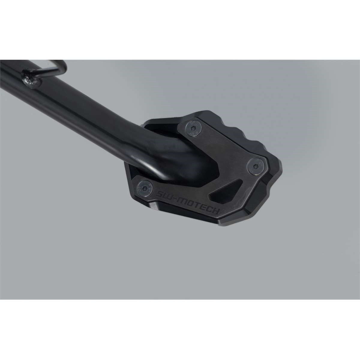 Die formschöne Fussverbreiterung ist aus hochfester Aluminium-Legierung CNC-gefrässt. Dank der grosszügigen Auflagefläche wird ein Versinken auf weichem Untergrund verhindert. Der Verbreiterungsfuss ist silber eloxiert, das obere Anbaublech schwarz pulverbeschichtet.