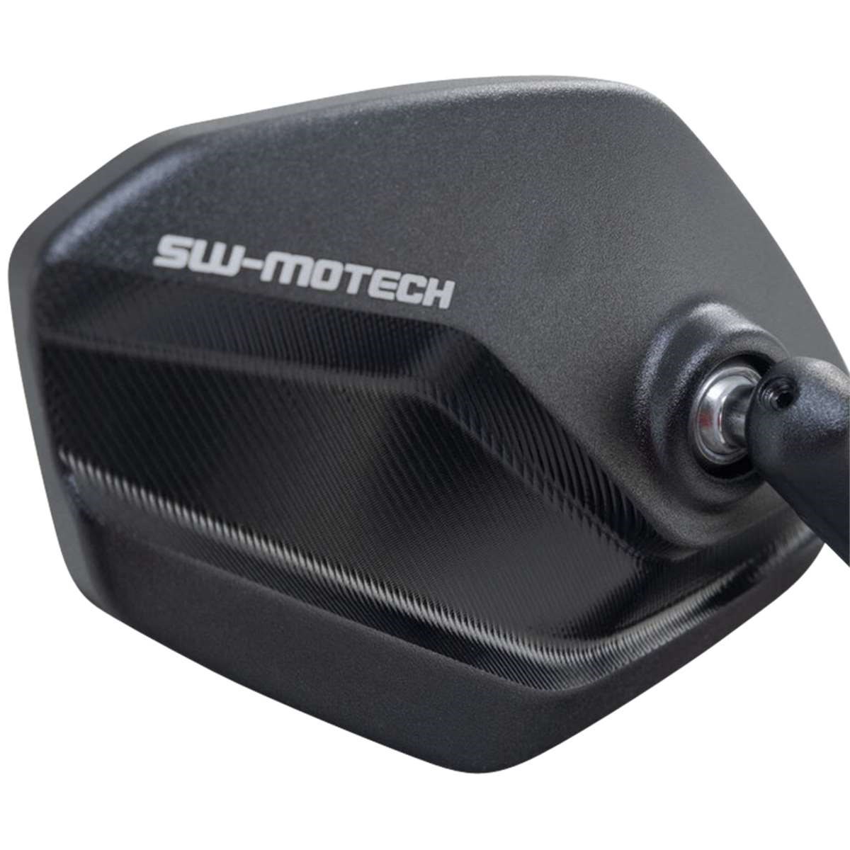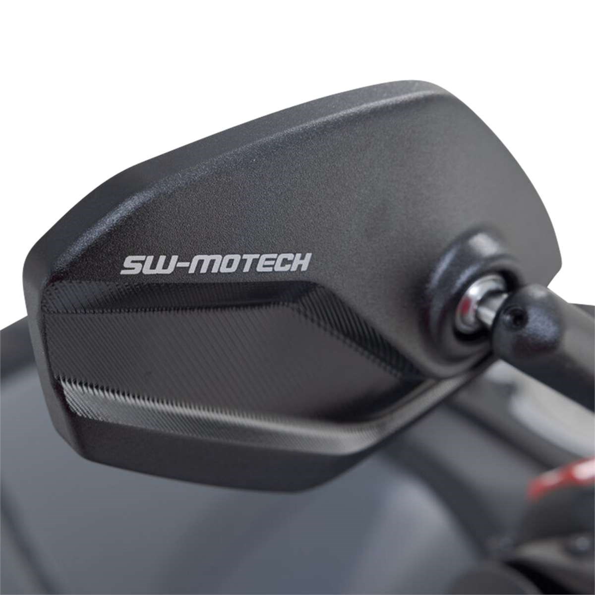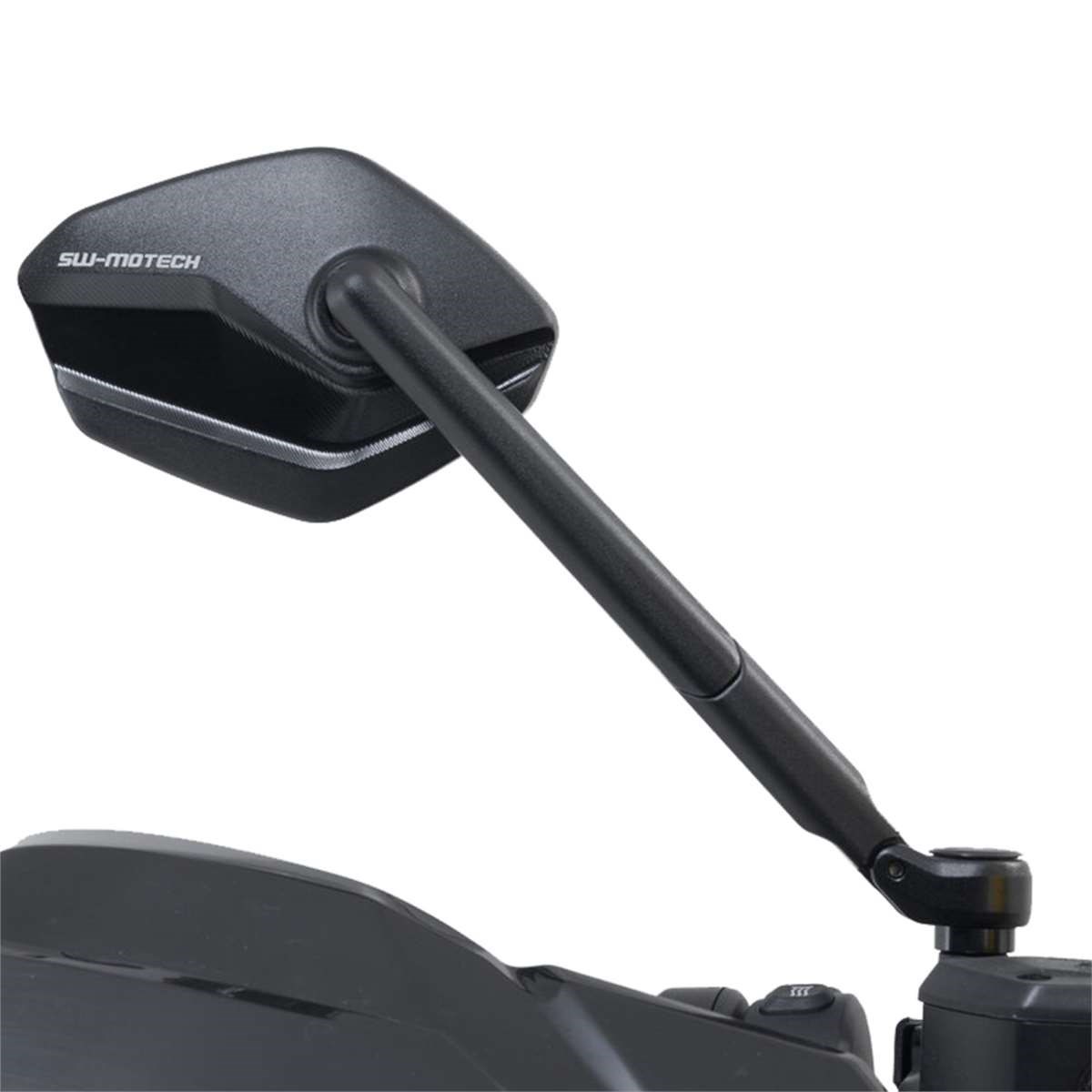 Die verstellbaren Spiegel im modernen und flachen Design fertigt SW-MOTECH aus schwarz eloxiertem Aluminium. Die Spiegelarme bestehen aus stufenlos verschiebbaren Elementen und sind jeweils um 30 Millimeter ausfahrbar. Die vielfältigen Einstellmöglichkeiten der Spiegel geben dem Piloten mehr Sicherheit durch besseren Überblick seines Umfeldes.