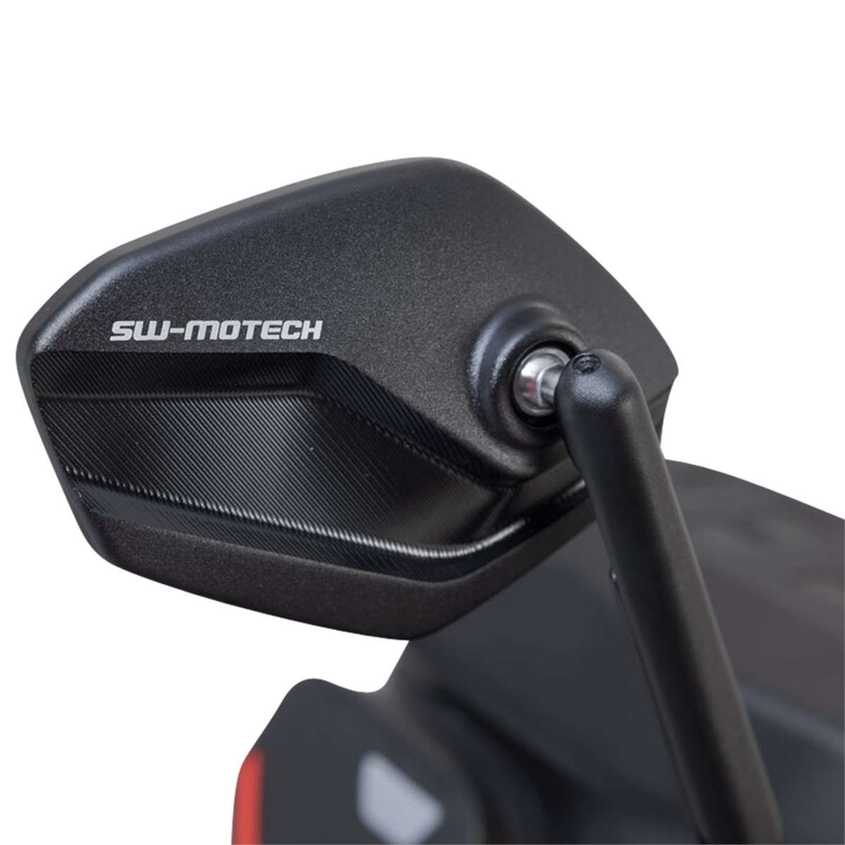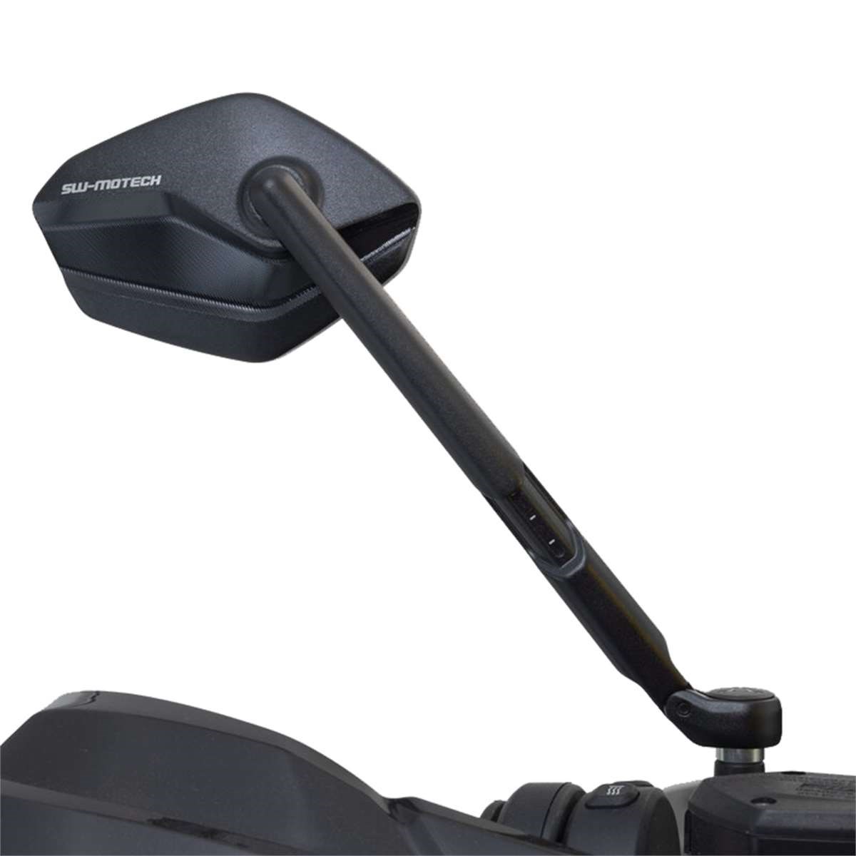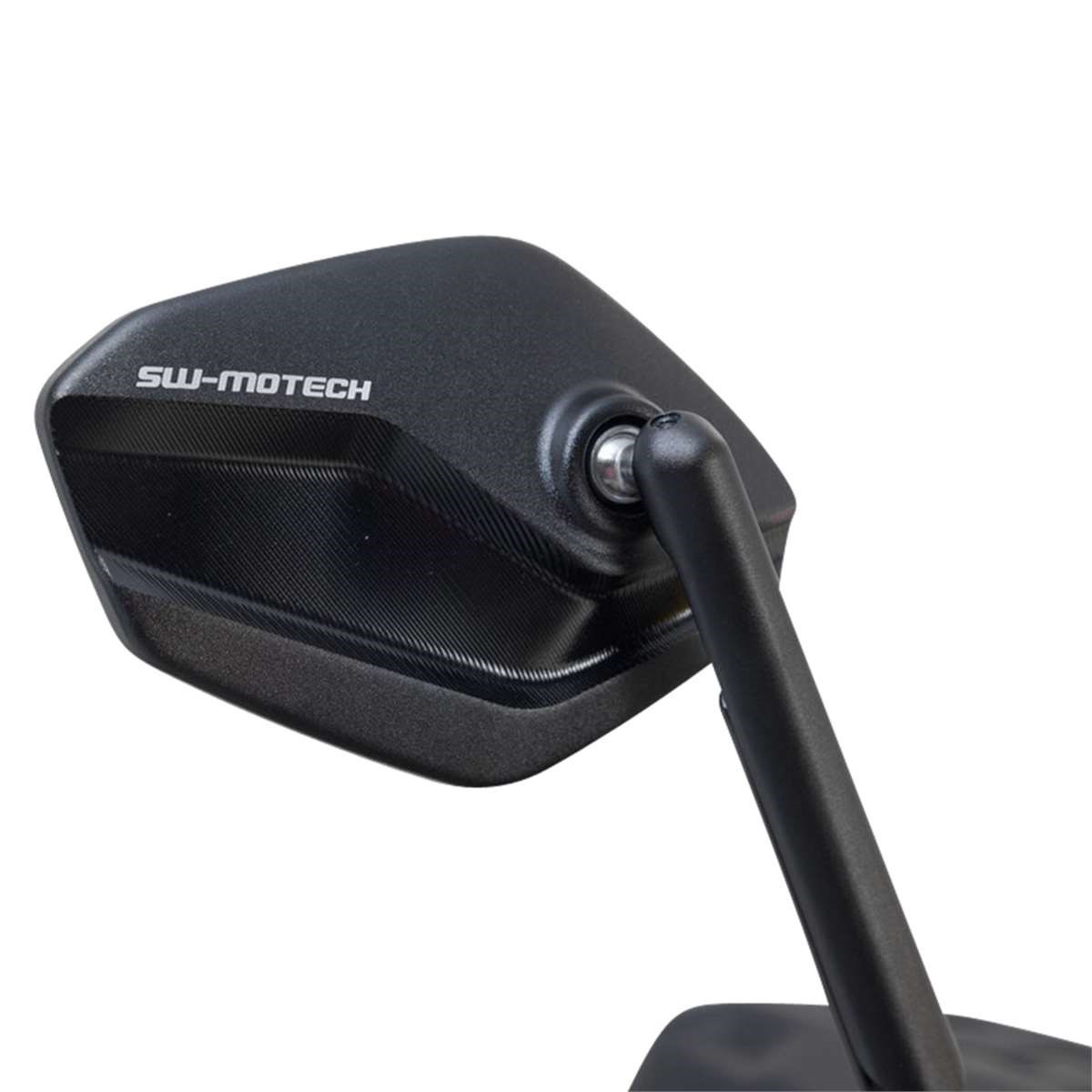 Die verstellbaren Spiegel im modernen und flachen Design fertigt SW-MOTECH aus schwarz eloxiertem Aluminium. Die Spiegelarme bestehen aus stufenlos verschiebbaren Elementen und sind jeweils um 30 Millimeter ausfahrbar. Die vielfältigen Einstellmöglichkeiten der Spiegel geben dem Piloten mehr Sicherheit durch besseren Überblick seines Umfeldes.