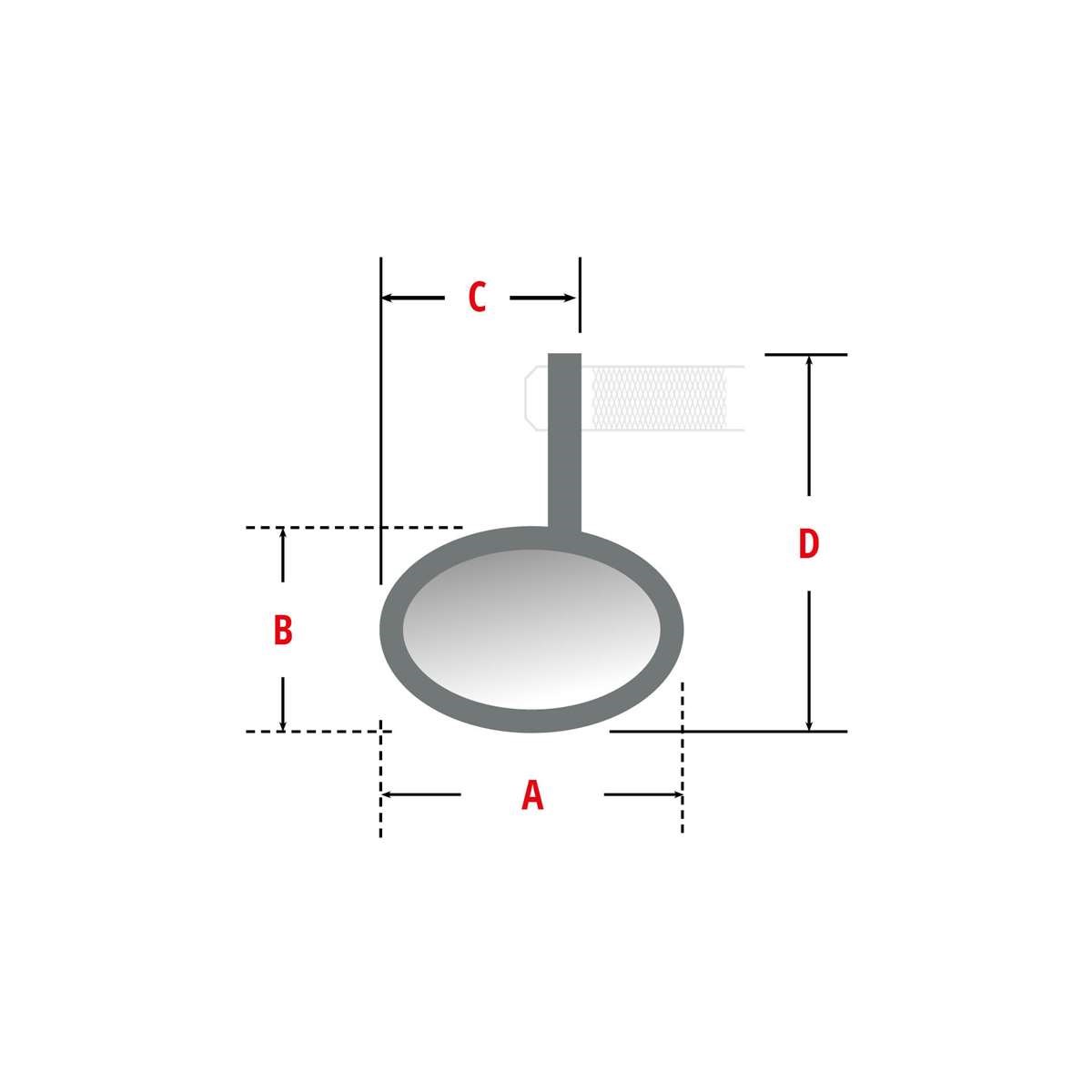 Maße: A Breite Kopf: 100 mm B Höhe Kopf: 100 mm C Gesamtbreite: 76,5 mm D Gesamthöhe: 165 mm Stiellänge: 120 mm Befestigungsschraube: M5