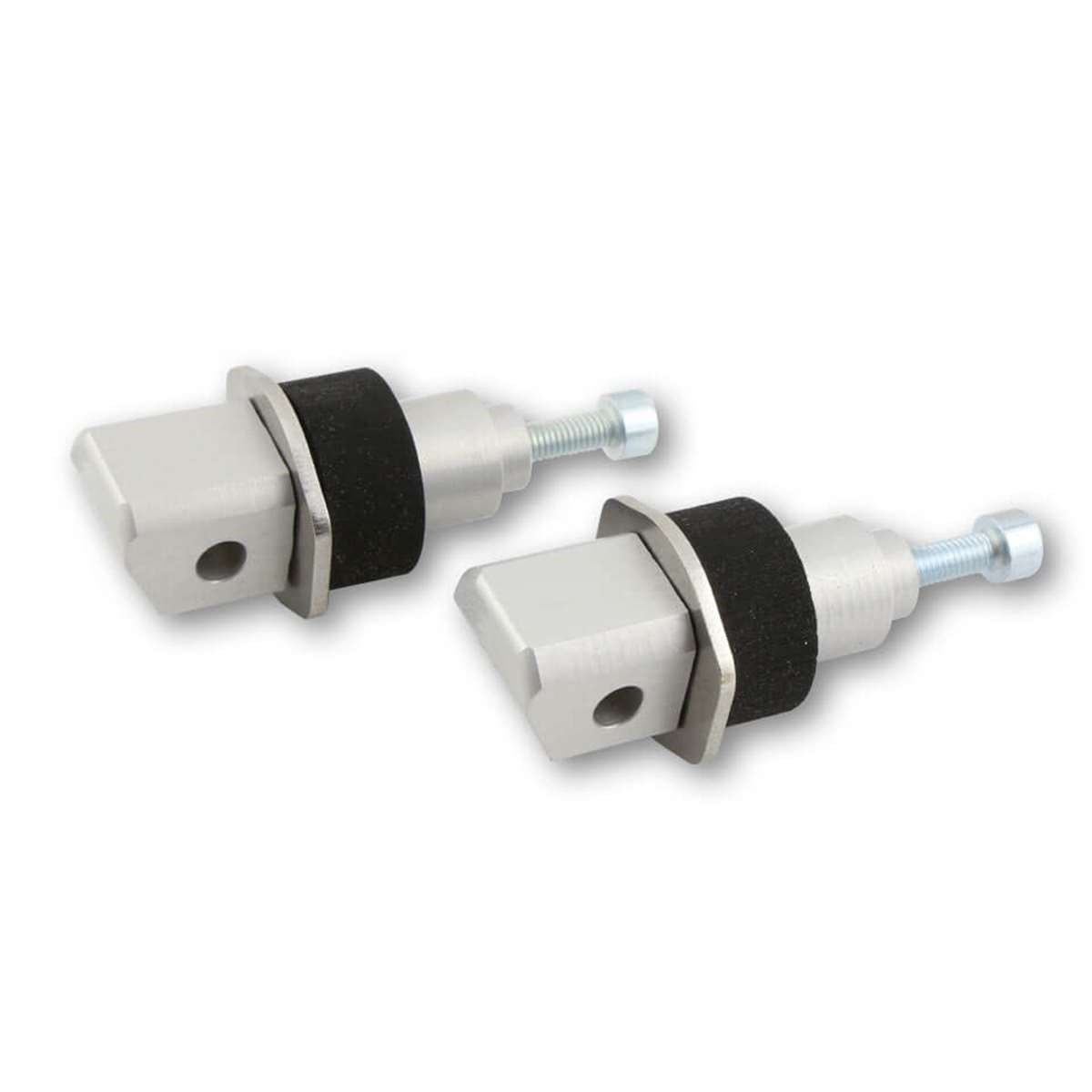 Die exakt gefertigten Gelenke verbinden die Rastenkörper mit der Serienaufnahme von allen gängigen Straßenmotorrädern. Alternativ bieten wir verstellbare Gelenke an, mit diesen lässt sich die Rastenposition individuell in 8 Positionen einstellen.