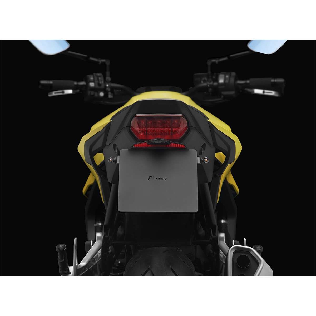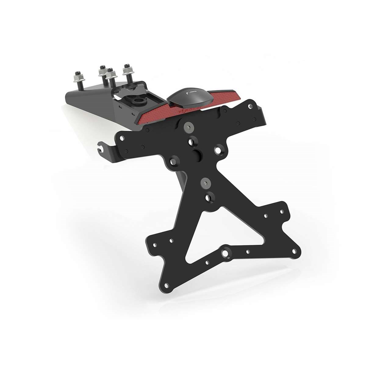 Der aus Aluminium gefertigte Kennzeichenträger Fox ist speziell für das jeweilige Motorradmodell konzipiert. Dadurch passt er sich nicht nur perfekt an die Liniengebung des Motorrads an, sondern punktet zudem durch eine einfache und schnelle Montage. Jedes Kit enthält alle benötigten Montageteile, wobei keine Veränderungen an OEM-Teilen vorgenommen werden müssen. Maximale Funktionalität auf kleinstem Raum und Einhaltung der Zulassungsstandards. Die Fox-Kits enthalten eine SMD-LED-Kennzeichenbeleuchtung, einen Reflektor und Adapter für Rizoma-Blinker, sind verstellbar und mit einem Feststeller zur Fixierung der korrekten Neigung ausgestattet.