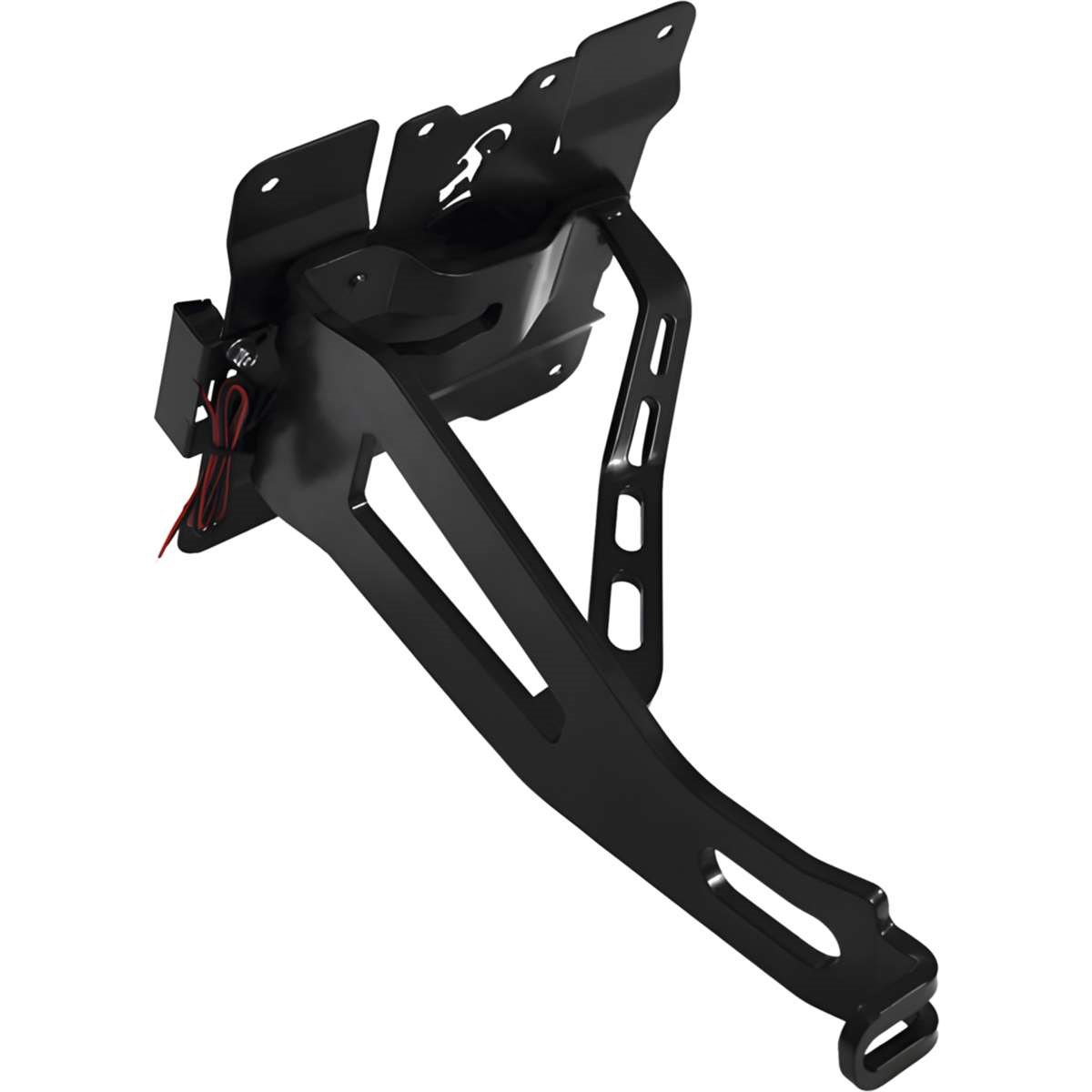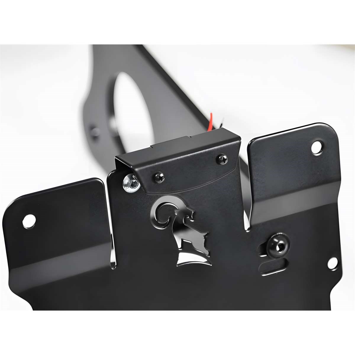 Der seitliche Kennzeichenhalter ist die perfekte Lösung für alle Chopper- und Cruiser-Fahrer, die einen lässigen Custom Look bevorzugen. Der Trägerarm ist aus Stahl gefertigt und bietet eine extrem stabile und verwindungssteife Konstruktion.