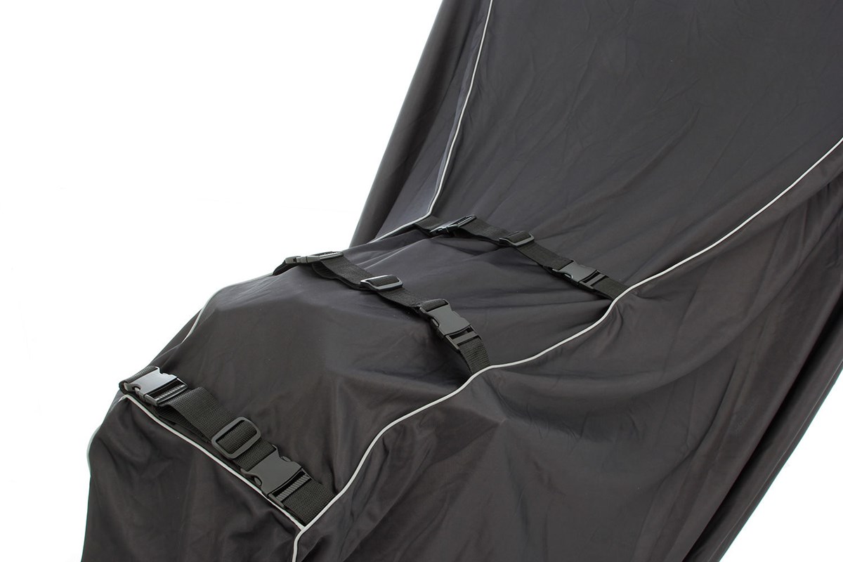 Zahlreiche Möglichkeiten der individuellen Einstellung unterstützen den perfekten, scheuerfreien Sitz des hochwertigen Indoor-Covers. Dazu zählen integrierte Elastikbänder am unteren Ende im Front und Heckbereich genauso, wie die drei einstellbaren Riegel zur individuellen Weitenregulierung im Heckbereich, die besonders komfortabel zugänglich auf der Oberseite des Covers angebracht sind. Sie erlauben die Nutzung des Covers mit und ohne Koffer.