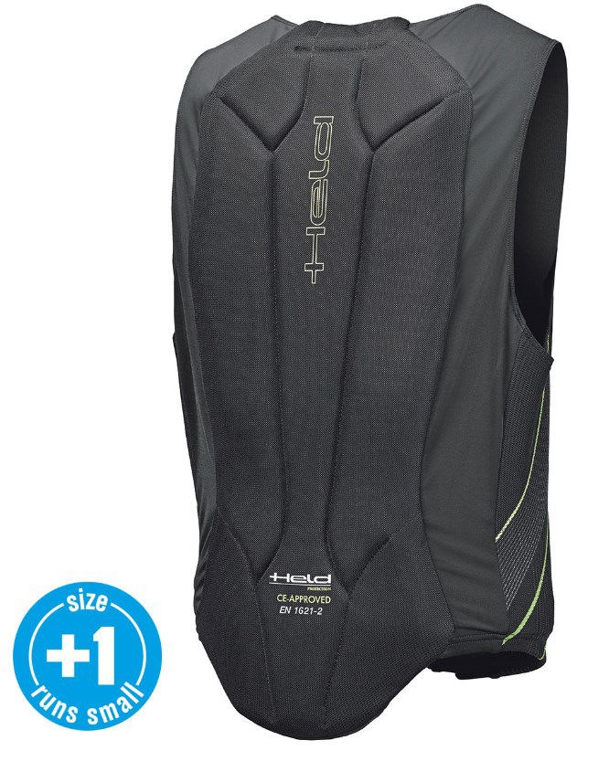 Rückenprotektor mit, vom Nacken bis zum Steissbein reichender Schutzzone, in zwei Varianten: 92189.18.63 (Damen) bzw. 92189.18.18 (Herren)