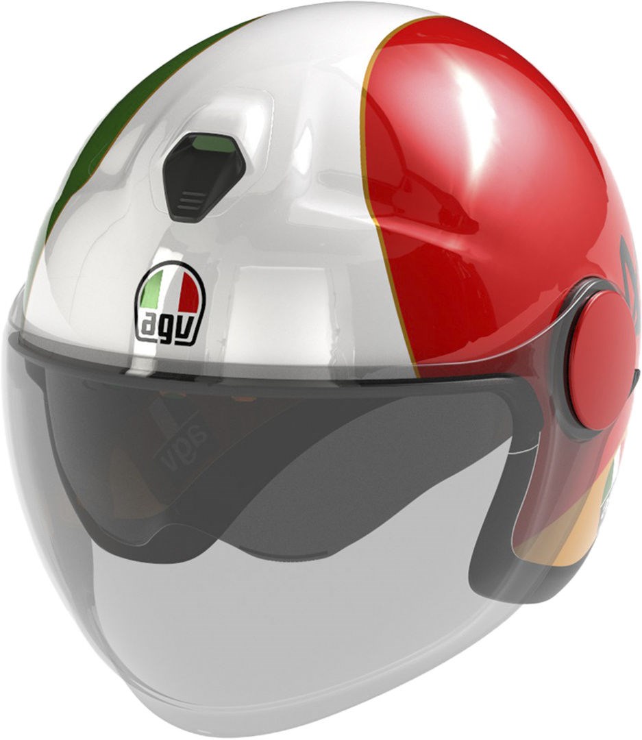 Eteres ist der neue ECE2206-zugelassene offene AGV-Helmaus thermoplastischem Material, der bei jedem urbanen Abenteuer Schutz und Komfort im Sattel bietet. Der Helm wurde so konzipiert, dass er sowohl in der Standardkonfiguration als auch ohne Visier nur mit praktischer Sonnenblende verwendet werden kann. Er hat ein klares und unverkennbares Design mit einem länglichen Visier, das einen besseren Gesichtsschutz gewährleistet. Für optimalen Komfort zu jeder Jahreszeit können Sie die Belüftung regulieren, indem Sie den oberen Lufteinlass betätigen. Die Innenausstattung des Eteres wurden so konzipiert, dass die Passform möglichst individuell gestaltet werden kann : die Wangenpolster sind in verschiedenen Stärkenerhältlich und können bei allen Helmgrössen perfekt ausgetauscht werden, was insgesamt 24 mögliche Helmkonfigurationen ergibt. Die geringere Dicke der Wangenpolster im Schläfenbereich ermöglicht es dem Fahrer auch, den Helm bequem mit jeder Art von Brille oder Sonnenbrille zu tragen. Alle Innenausstattungen, einschliesslich des Kinnriemens, sind komplett abnehmbar und waschbar. Das EPS mit mehrfacher Dichte garantiert maximalen Schutz für alle Kopfbereiche, auch für die empfindlichsten. Eteres ist ein Helm, der ein Höchstmass an Zweckmässigkeit gewährleistet: Bei täglichen Fahrten sind der mikrometrischeVerschluss, der Diebstahlschutzring für die Aufbewahrung des Helms in maximaler Sicherheit und die Kompatibilität mit modernsten Kommunikationssystemen unverzichtbare Eigenschaften, um in völliger Freiheit zu fahren.