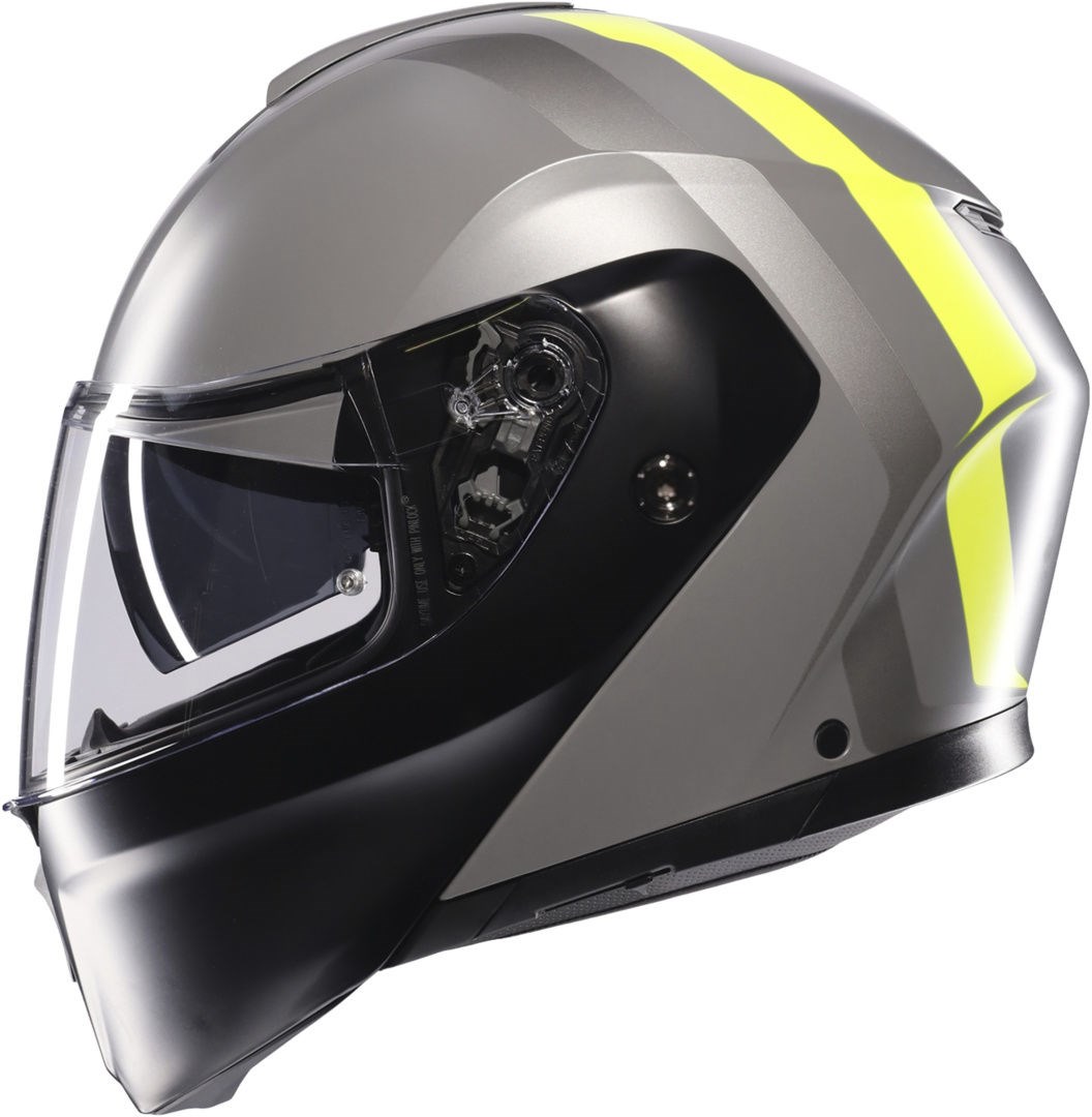 Dank des AGV Extreme Safety Designprotokolls übertrifft der Streetmodular alle von der strengen ECE22.06-Norm geforderten Spezifikationen bei Weitem und verfügt über eine P/J-Homologation, die eine sichere und strassenzugelassene Nutzung auch mit geöffnetem Kinnschutz ermöglicht.
