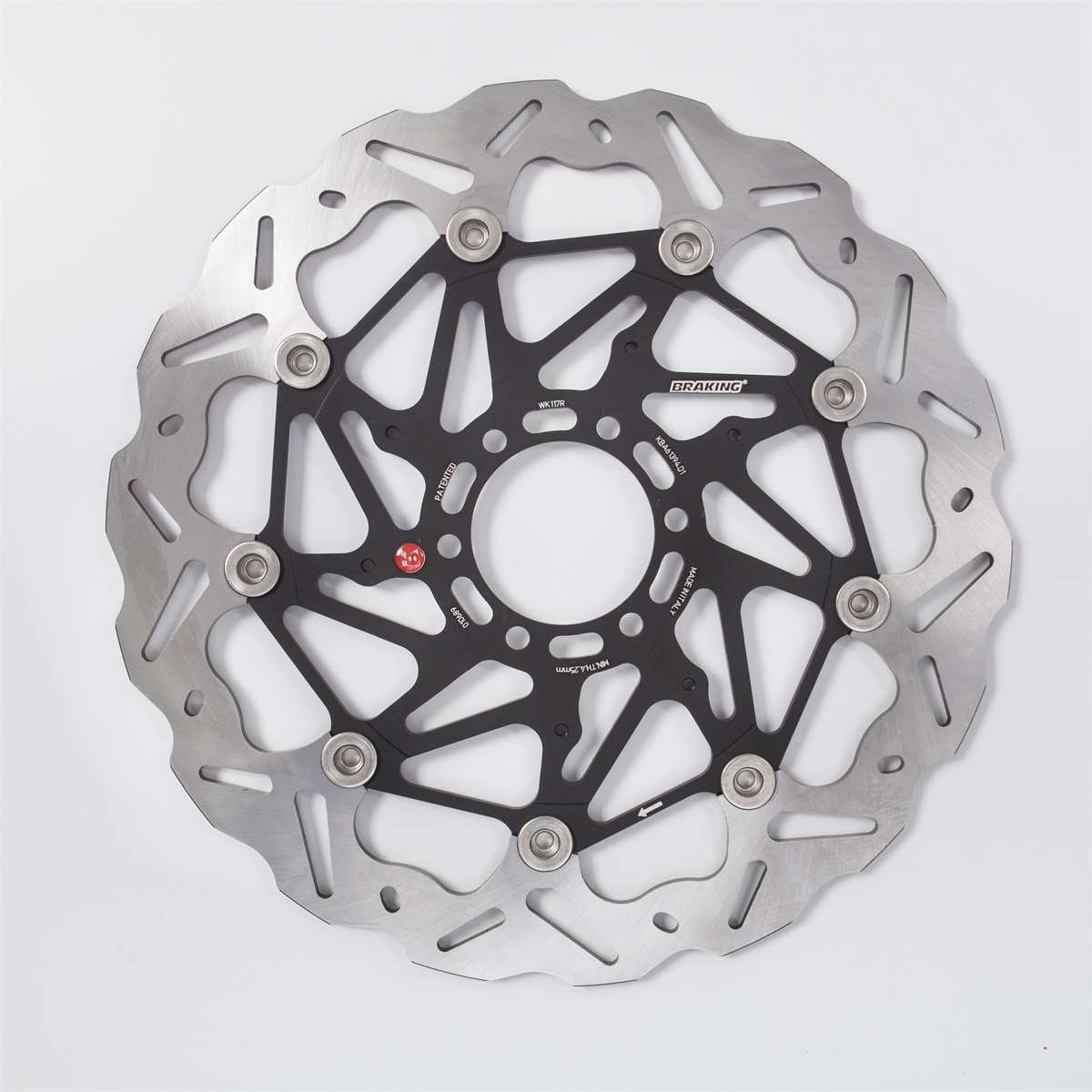 Bremsscheibe vollschwimmend mit Stahlaussenring im Wave Design, Innenring aus Aluminium.