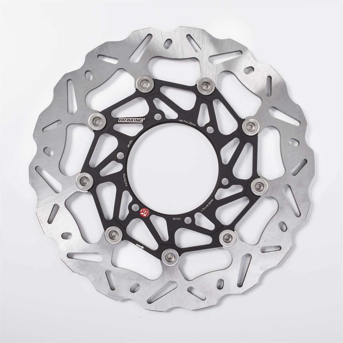 Bremsscheibe vollschwimmend mit Stahlaussenring im Wave Design, Innenring aus Aluminium.