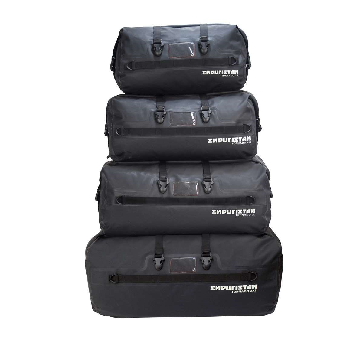 Mit unserem wasserdichten 3-Lagen-Stoff, dem Rolltop-Verschluss und einem komplett verschweissten Design sind die Tornado 2-Packtaschen 100% wasser-, schmutz, schnee- und staubdicht.