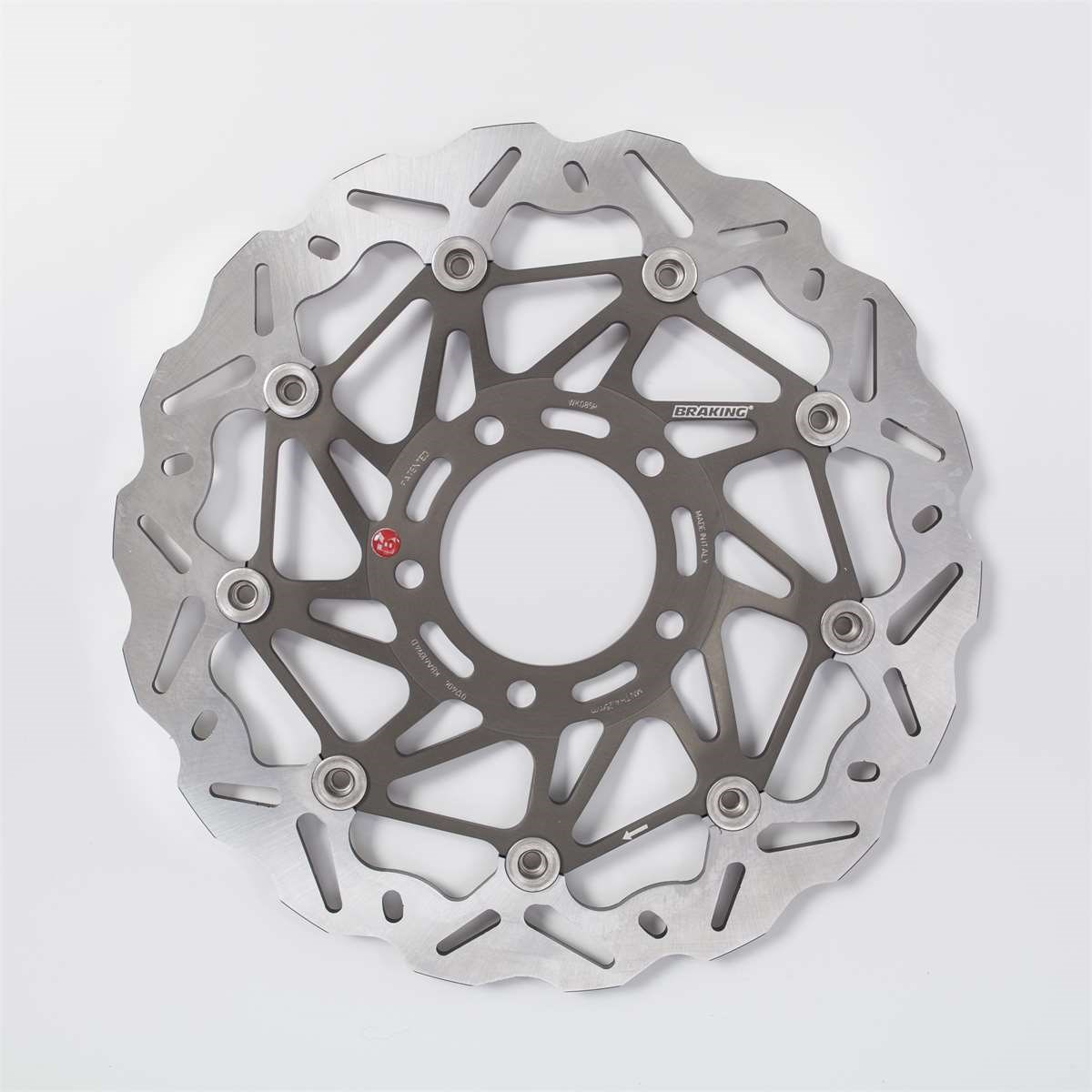 Bremsscheibe vollschwimmend mit Stahlaussenring im Wave Design, Innenring aus Aluminium.