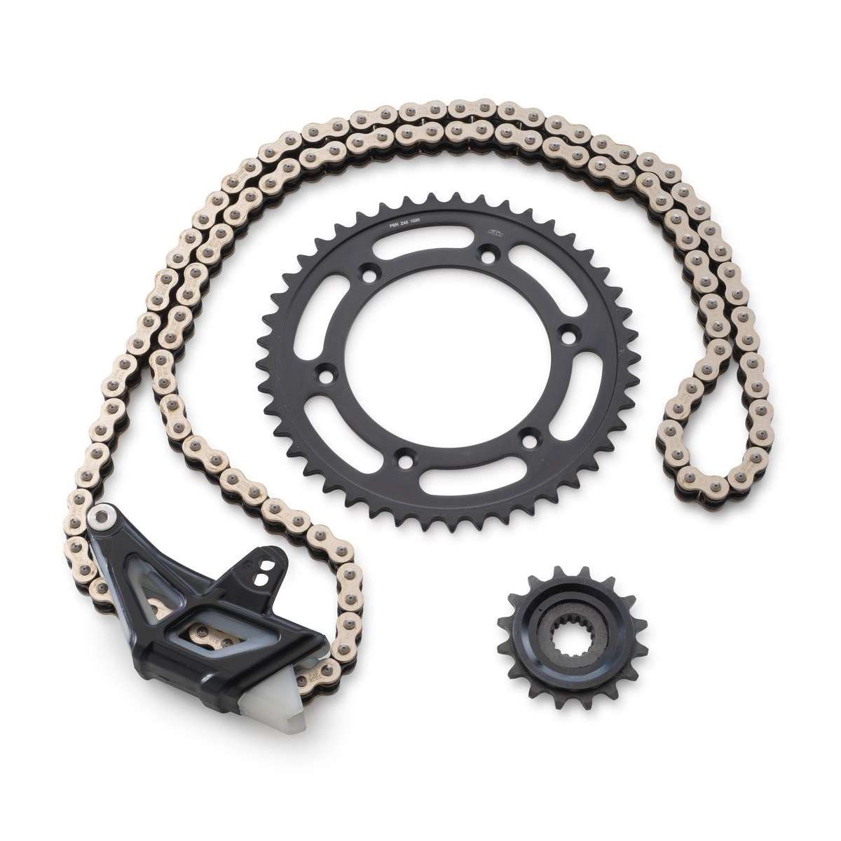 Der Antriebssatz besteht aus dem vorderen (16 Zähne) und dem hinteren Kettenrad (45 Zähne) und der Kette.