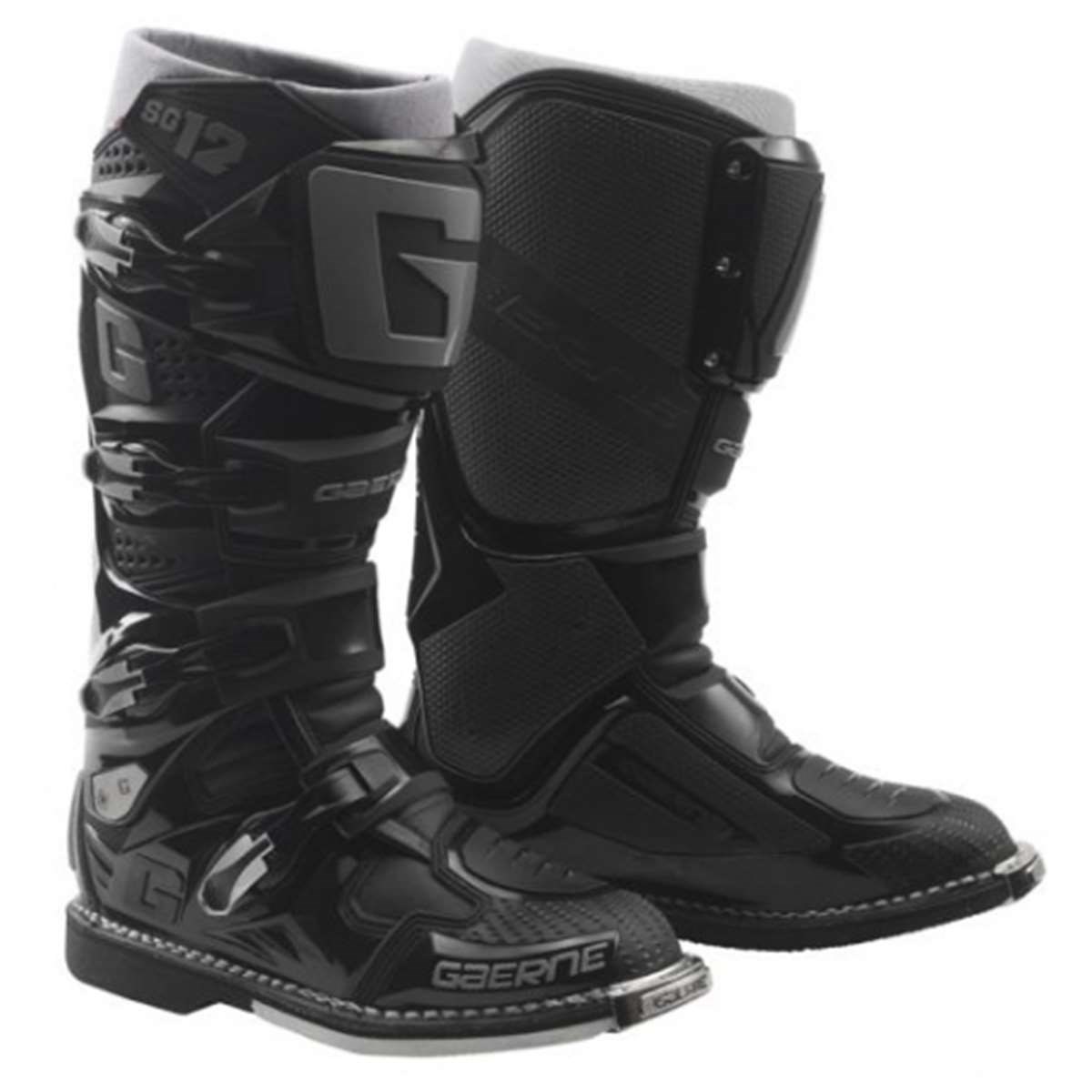 Hochwertiges, vollnarbiges Leder, patentiertes Zweifach-Gelenksystem, einstellbare Schienbeinverstärkung, Wadenbein- Fersen- und Zehenschutz, Schaltverstärkung, Belüftung durch Perforation am Schaft, verstell- und auswechselbare Alu-Schnallen, Innere Polsterung aus Memory-Schaumstoff, Fussbett mit stossabsorbierendem Einsatz, hitzebeständiger Wadenschutz aus „Grip Guard” Kunststoff, benzin- und ölresistente Sohle mit Stahleinlage