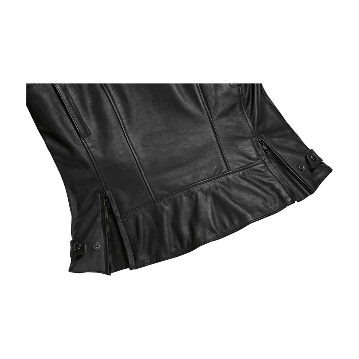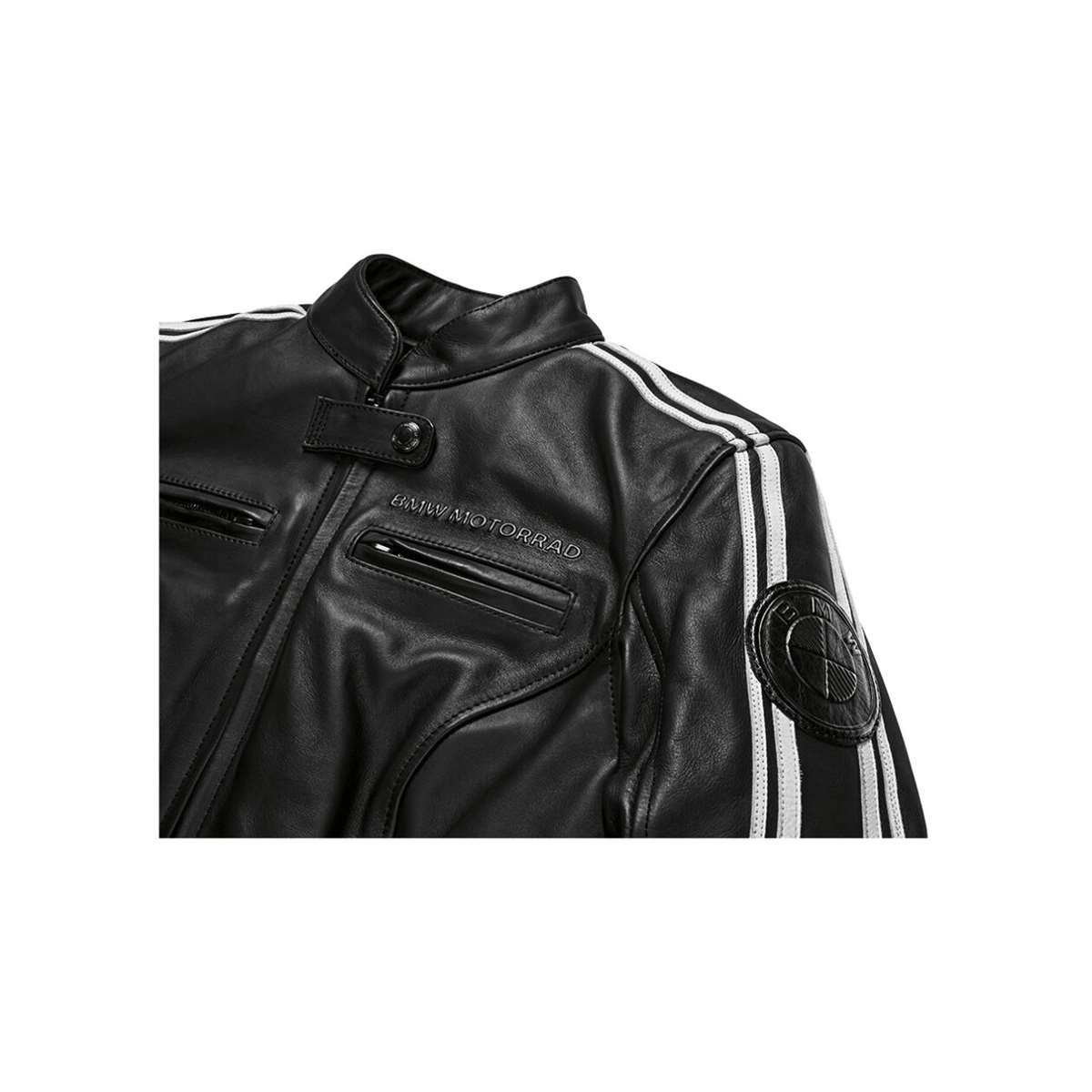 Die in klassisch sportlichem Design gehaltene Lederjacke TwinStripes für Damen lässt vergangene Zeiten wieder aufleben. So setzen die typischen weißen Zierlinien auf den Ärmeln traditionelle optische Akzente, die sich auch an vielen BMW Motorrädern wiederfinden. Die Jacke ist aus ca. 1,2 mm starkem Rindleder geschneidert, das sich durch hohen Tragekomfort und sportliche Optik auszeichnet. Ausstattungsmerkmale wie der durchgehende Metallreißverschluss mit hinterlegter Windleiste, der Belüftungsreißverschluss am Rücken, das hochwertige Innenfutter, vier verschließbare Außentaschen und drei verschließbare Innentaschen machen die lässige Motorradjacke alltagstauglich. Zur Sicherheit verbergen sich unter dem Leder moderne NP-Flex-Protektoren an Schultern und Ellbogen, die kaum auftragen und mit höchstem Tragekomfort und guten Schlagdämpfungswerten aufwarten. Ein NPL-Rückenprotektor ist nachrüstbar. Der 40 cm breite Verbindungsreißverschluss bietet zudem die Möglichkeit, die Lederjacke an einer Motorradhose zu fixieren.